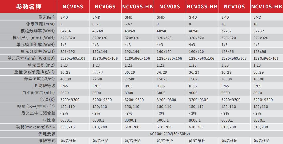1.超轻箱体设计,低于30Kg/㎡,和传统⼾外箱体⽐较,重量降低了20%-30%, 便于运输和安装;减轻了背部⽀撑结构的重量,降低了整体使⽤费⽤。NCV的厚度仅有10cm,⽆论是⽤于⼾外⼴告还是体育场⼤屏都可以带来惊艳的视觉效果