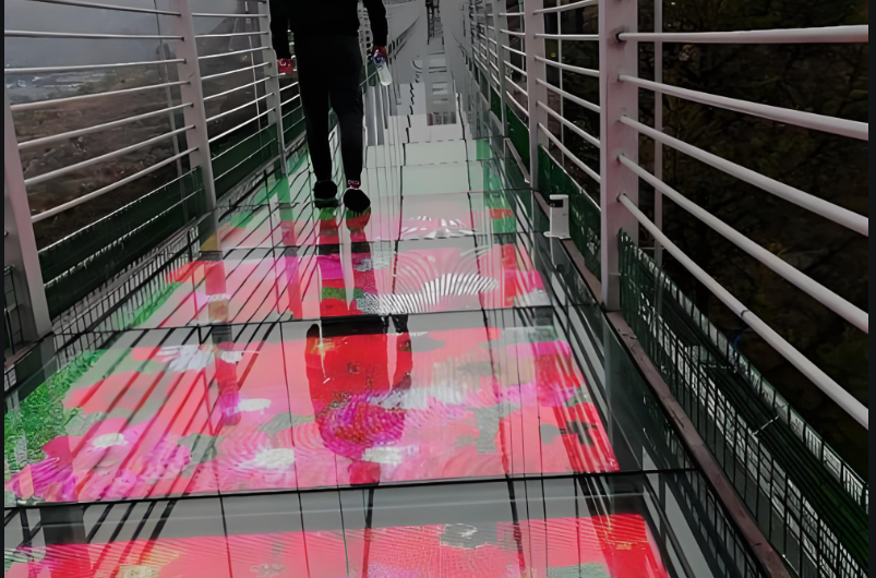 在玻璃栈道这一特殊载体上,LED显示屏的应用已突破传统信息展示的范畴,向沉浸式体验和功能服务集成延伸。其落地场景主要聚焦在四大方向: