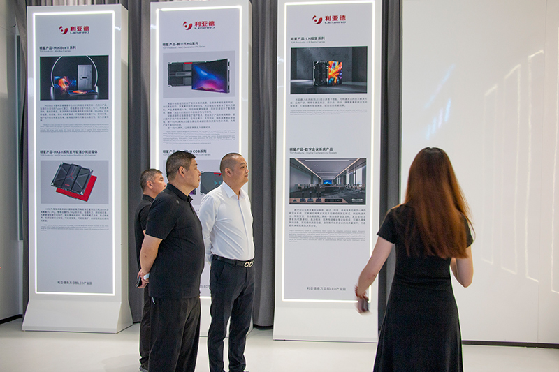 考察期间,来访嘉宾一行参观了米兰milan南方产业园区、数字化生产线、LED超高清显示产品等17大应用场景,包括时光隧道、虚拟演播厅、虚拟拍摄、智慧教室、家庭影院、裸眼3D显示、VR互动、Optitrack动作捕捉等,参观期间,李振龙详细介绍了米兰milan在文化科技融合发展方面的创新实践,以及在智能显示、虚拟现实等领域取得的成绩。